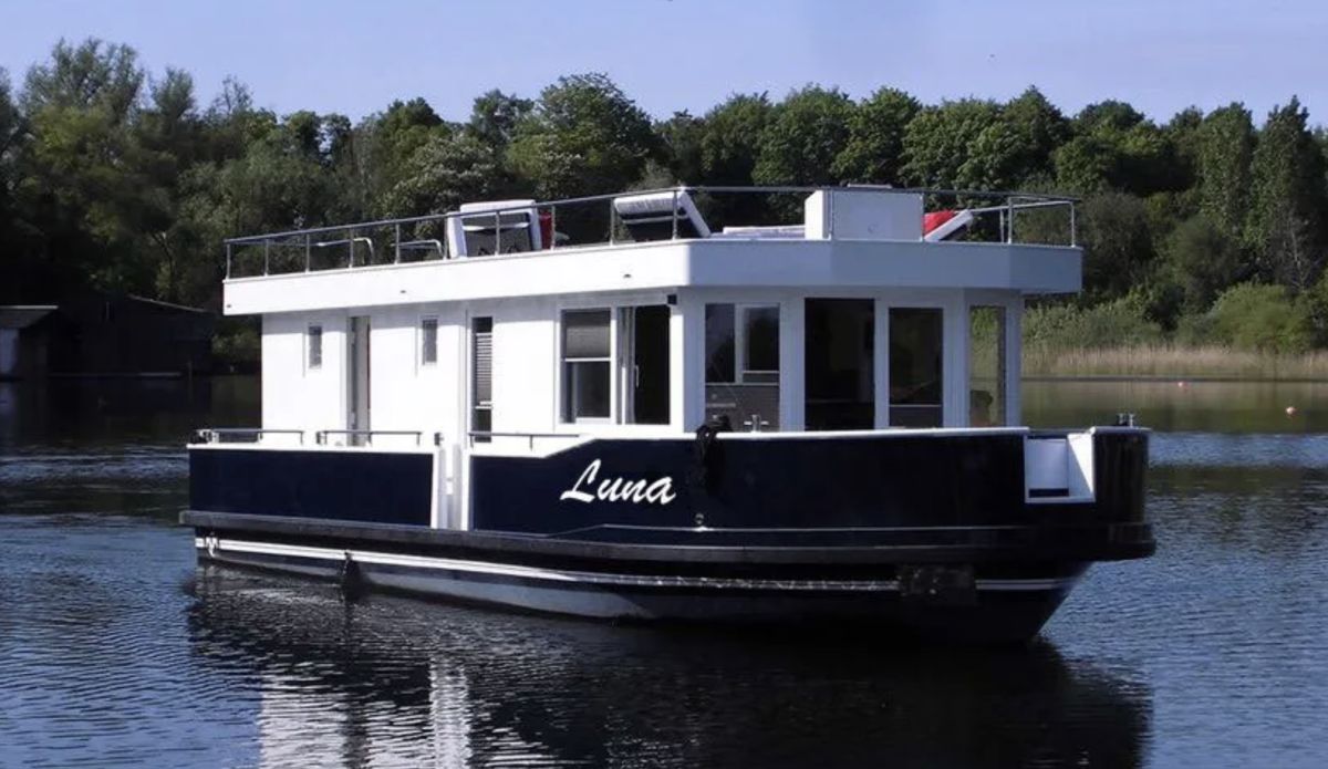 Das neue Hausboot „Luna“ lädt zu einem unvergleichlichen Aufenthalt auf dem Wasser ein. Mit einer Länge von 12 Metern, einer Breite von 4,35 Metern und einer Höhe von 3,45 Metern bietet dieses Verdränger-Hausboot ausreichend Raum und Komfort für bis zu vier Personen. Das Schiff stellt eine Symbiose aus Hausboot und Stahlverdränger dar. Somit ist das Schiff auch bei etwas mehr Wind und Welle gut zu steuern und liegt stabil im Wasser aufgrund der Rumpfform. Dank ebenerdigem Zugang kann man altersgerecht an Bord kommen. Ausgestattet mit einem leistungsstarken 75 PS Craftsman-Hyundai Einbaudiesel-Motor, garantiert „Luna“ eine ruhige und stabile Fahrt – selbst bei windigeren Bedingungen.