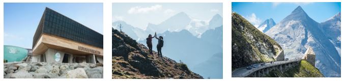 -Die denkmalgeschützte Großglockner Hochalpenstraße wurde 1935 offiziell eröffnet. Mit ihrer wohldurchdachten Straßenführung über 48 Kilometer und bis hinauf auf 2.571 Meter Seehöhe (Edelweiß-Spitze) gilt sie als schönste Panoramastraße Europas, die jährlich im Sommerhalbjahr bis zu 900.000 Besucher begeistert. Als Nord-Süd-Verbindung führt sie von Salzburg im Norden nach Kärnten im Süden bzw. umgekehrt. Entlang der Straße finden sich 15 Ausstellungen, zwölf Erlebnis-stationen , sieben Shops mit Bistros sowie einladende Bergrestaurants, zahlreiche Rastplätze, Foto- und Info-Points sowie Lehr- und Panoramawege und ein bestens markiertes Wanderwegenetz. www.grossglockner.at