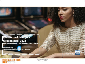 Die ‚Werbemarktanalyse Glücksspiel 2023‘ von research tools untersucht die Werbeausgaben der Glücksspielanbieter in Deutschland. Sie gibt auf 155 Seiten Einblick in Trends, Benchmarks und Strategien in neun Teilmärkten, darunter Deutscher Lottoblock, Fernsehlotterien, Online-Casino, Sportwetten. Neben der Entwicklung von Werbespendings für 130 Marken werden Fünf-Jahres-Trends erstellt. Eine Analyse der Kommunikationsstrategien zehn wichtiger Werbungtreibender untersucht quantitative und qualitative Parameter und zeigt bedeutende Werbemotive.