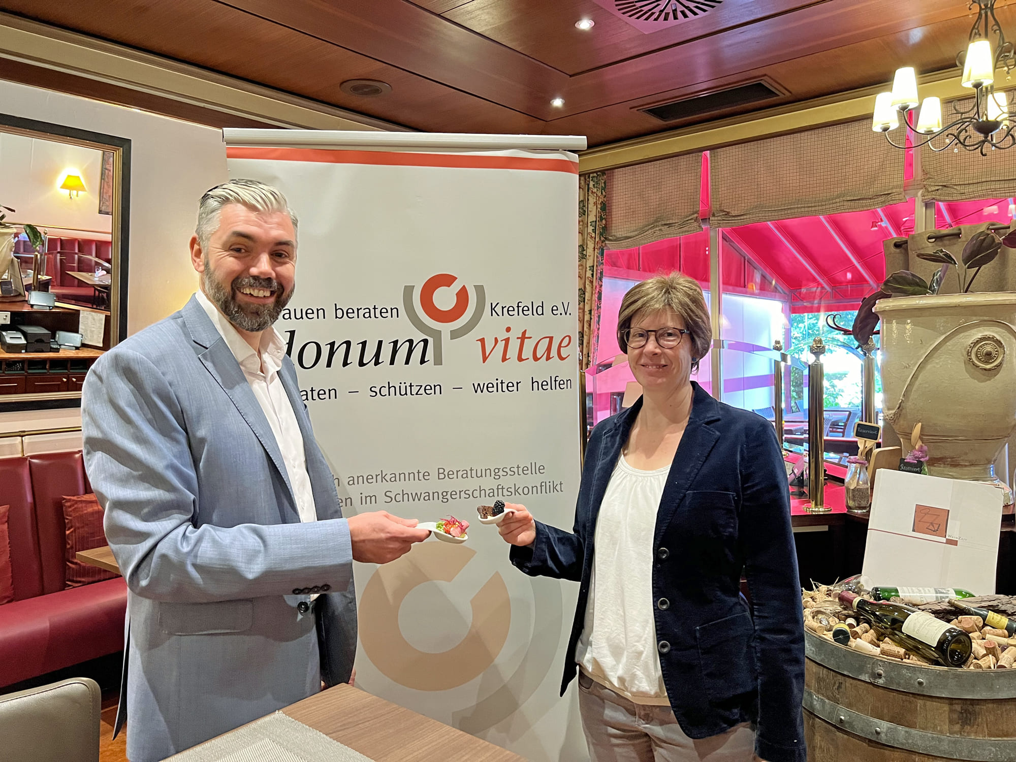 Für seine Arbeit, die auch die gesetzlich vorgeschriebene Beratung zum Schwangerschaftsabbruch und sexuelle Aufklärung an Schulen umfasst, wird der Verein zu 80 Prozent gefördert. Daher ist er auf Mitgliedsbeiträge und Spenden angewiesen. „Bisher haben wir es immer noch geschafft, unser Angebot aufrecht zu erhalten“, sagt Bärbel Backhaus nicht ohne Stolz. „So können wir im kommenden Jahr unser 25jähriges Bestehen feiern.“ Damit die soziale Arbeit des Vereins mehr Sichtbarkeit erhält, möchte der Krefelder Hof auch über den anstehenden Event hinaus seine Aktivitäten unterstützen. „Alle unsere bisherigen Kooperationen sind immer langfristig angelegt“, betont Hoteldirektor Bart Vaessen. „Denn nur so entstehen die wichtigen persönlichen Verbindungen.“