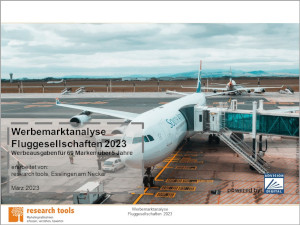 Die ‚Werbemarktanalyse Fluggesellschaften 2023‘ von research tools untersucht die Werbeausgaben der Fluggesellschaften in Deutschland. Sie gibt auf 88 Seiten Einblick in Trends, Benchmarks und Strategien und zeigt quantitative Fünf-Jahres-Trends für 69 Airlines auf. Für zehn Top-Marken visualisiert neben einer zeitlichen Werbedruckverteilung nach Mediengattungen eine statistische Kommunikationspositionierung auf Basis Jahreszeiten und Mediensplit die Allokation der Budgets.