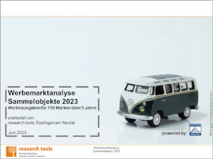 Die ‚Werbemarktanalyse Sammelobjekte 2023‘ von research tools untersucht die Werbeausgaben für Sammelobjekte in Deutschland. Sie gibt auf 93 Seiten Einblick in Trends, Benchmarks und Strategien und zeigt quantitative Fünf-Jahres-Trends für 150 Marken auf. Für zehn Top-Marken visualisiert neben einer zeitlichen Werbedruckverteilung nach Mediengattungen eine statistische Kommunikationspositionierung auf Basis Jahreszeiten und Mediensplit die Allokation der Budgets.